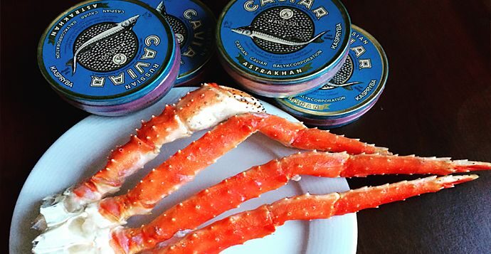 Прием заказов с доставкой в этот же или на следующий день: пн-пт 10:00-17:00. Заказы по форме на сайте - круглосуточно. Бесплатная доставка морепродуктов, камчатского краба, черной и красной икры по Санкт-Петербургу при заказе на сумму от 6000 рублей, на меньшую сумму стоимость доставки составит 300 рублей. Стоимость доставки за пределы КАД, а так же доставки икры в выходные и праздничные дни оговаривается индивидуально с диспетчером. Предоставляем полный пакет документов на продукцию.